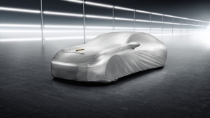 Perfect-fit outdoor vehicle cover made from water-repellent material. With full-color Porsche Crest and logo. Including anti-theft protection